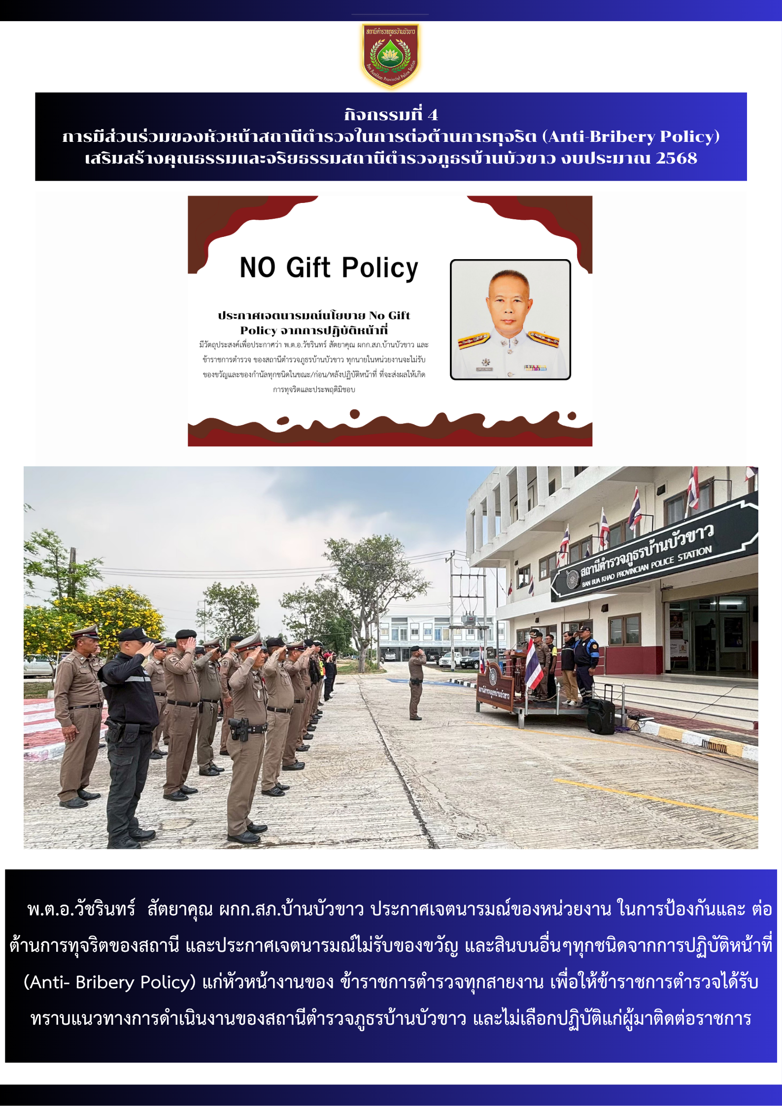 การมีส่วนร่วมของหัวหน้าสถานี NO GIFT POLICY ภาษาไทย
